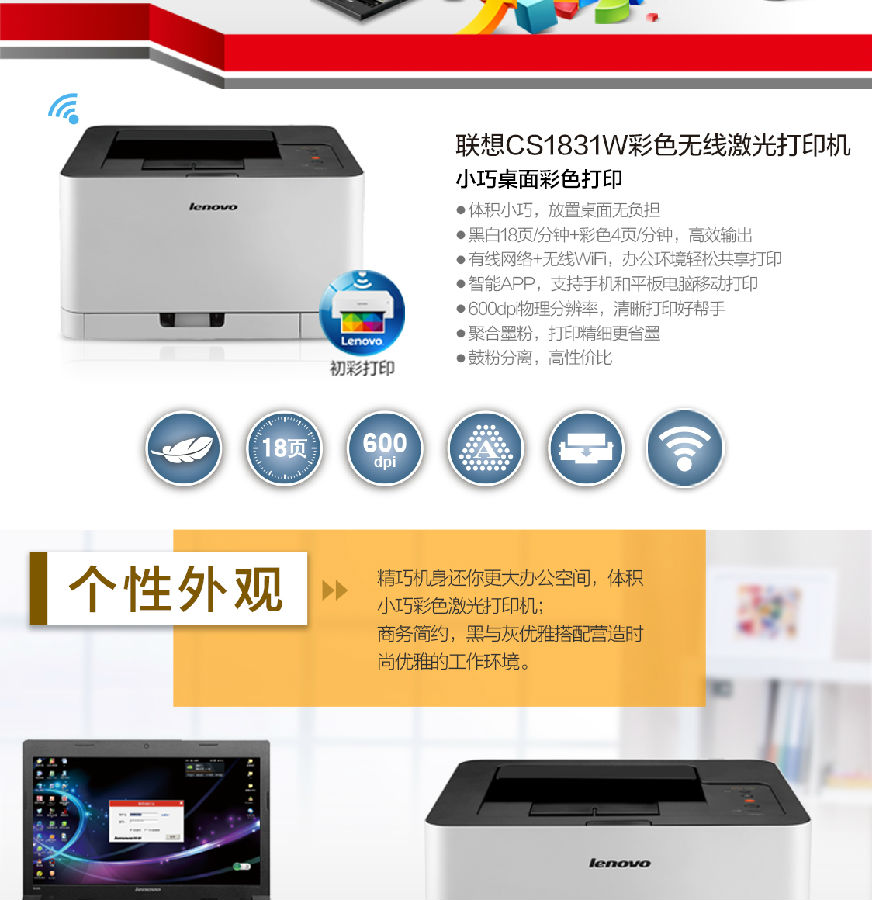 聯(lián)想CS1831W彩色激光打印機